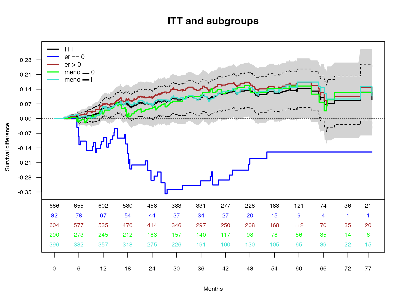 title(main="Estrogen receptor positive (er>0) sub-population")