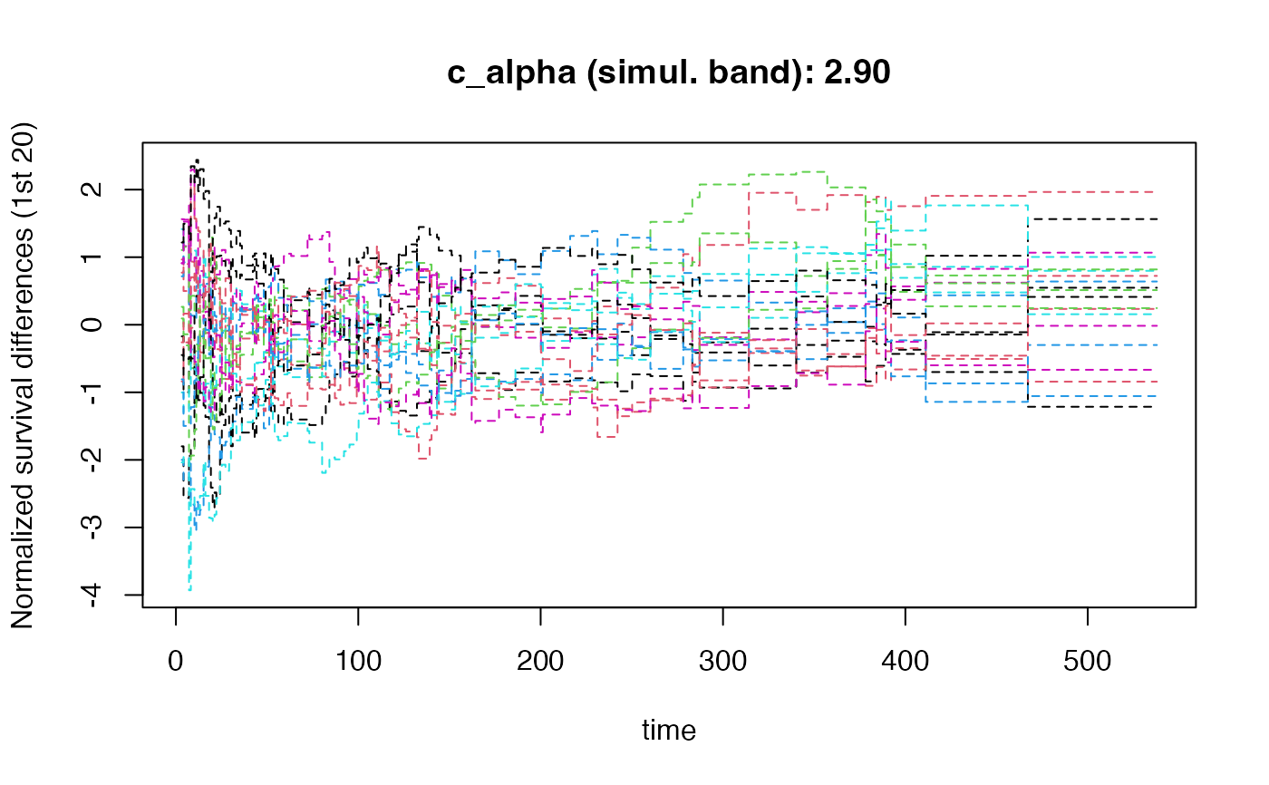 lower,upper): Cover the true difference at each time point with probability 1-alphaSimultaneous bands (