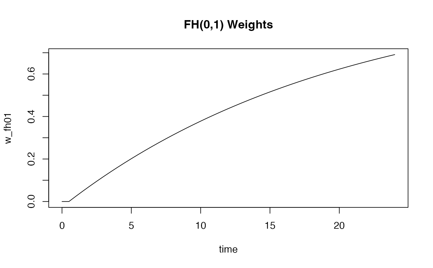 w_fh01 <- wt.rg.S(surv, scheme = "fh", rho = 0, gamma = 1, tpoints = time)